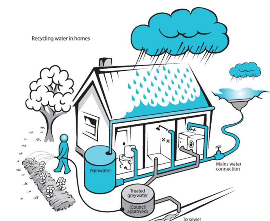 Binalarda gri su; yani duş, küvet, lavabodan toplanan su arıtılarak yeniden kullanılabilir ve içme suyu tüketimini azaltabilir. Ayrıca armatür, tesisat elemanları ve cihazlar verimli tip seçilerek önemli farklar yaratılabilir.